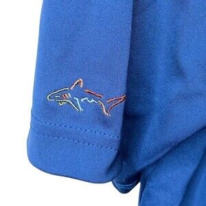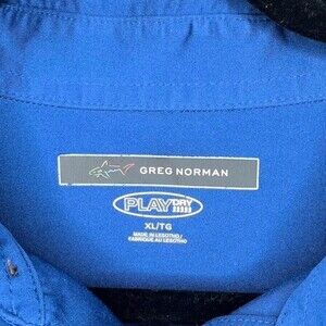 Men's Greg Norman Play Dry Golf Polo Shirt, size XL / Extra Large. In excellent condition with minimal visible wear! Blue with white accent at collar. Short sleeved polo style shirt with three buttons and Greg Norman multicolor shark logo on sleeve. Lightweight, moisture wicking fabric helps keep you dry on the golf course.