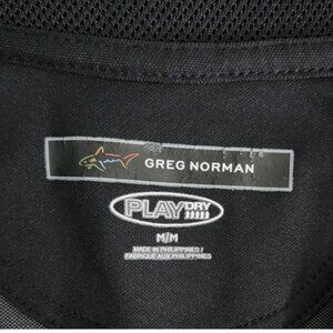 Greg Norman PlayDry Mens Polo Medium Short Sleeve Polyester Black Gray Geometric