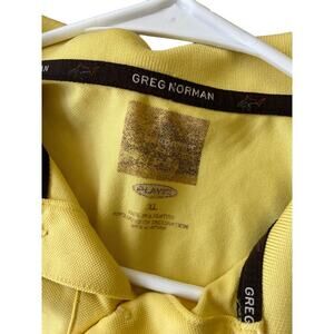 Greg Norman Polo Shirt in size XL. Featuring a vibrant yellow solid color and Play Dry technology, this shirt combines style and performance for both on and off the course.