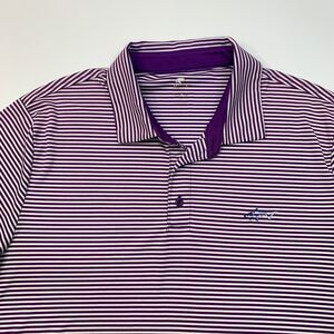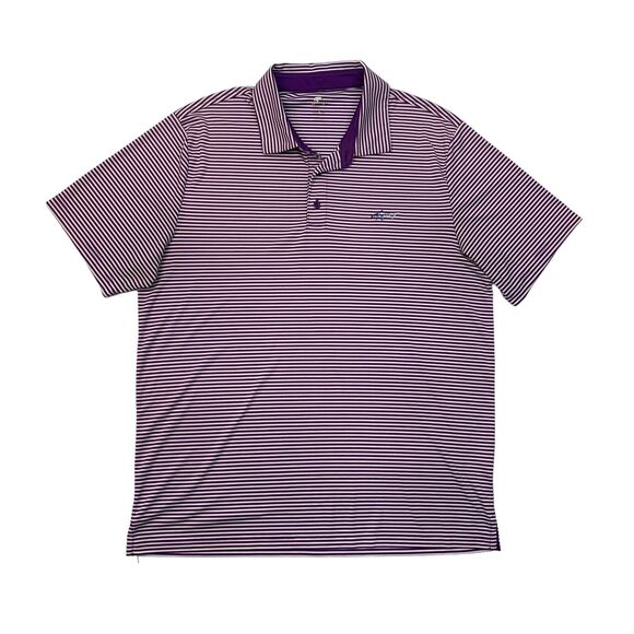 Greg Norman Polo Shirt Mens XL Mulberry Purple White PlayDry Striped Golf
