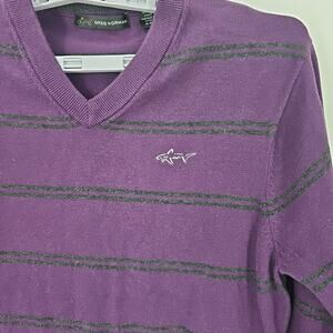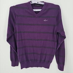 Greg Norman Purple and Green Stripe Men's Pullover 100% Cotton Sweater Size S