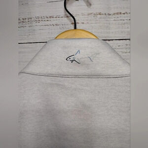 Discover the ultimate in performance with the Greg Norman Full Zip Shark Performance Jacket. This lightweight, high-quality jacket in a stylish light gray color is designed for optimal comfort and style. With a size XL measuring 25" from armpit to armpit and 30" in length, it offers a perfect fit. The standout feature is the iconic shark logo on the back of the neck. This jacket is in impeccable condition, making it a must-have addition to your wardrobe.