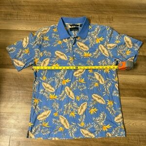 Greg Norman Shark Golf Polo Floral in Color Blue and Tan Brown Mens Size XL