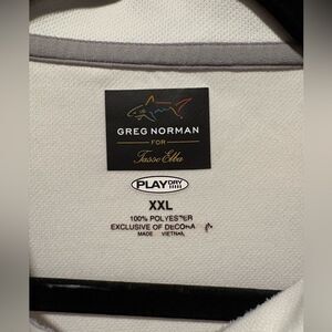 Greg Norman Shirt Mens XXL Tasso Elba White Gray Polo Short Sleeve Polyester