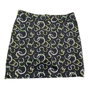 Greg Norman Skort Skirt Women's Large Black Green Circle Print Knit Stretch
