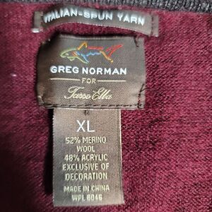 Greg Norman Tasso Elba Mens XL Maroon Sweater Italian Spun Yarn V Neck
