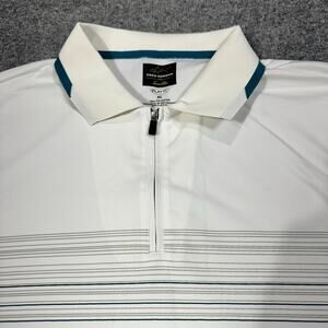 Greg Norman Tasso Elba PlayDry White Striped Quarter Zip Polo Shirt Size XL