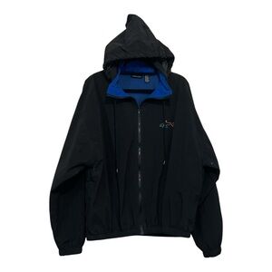 Greg Norman Windbreaker, Full Zip, Packable Hood, Men’s, Blue/Black, Size Large