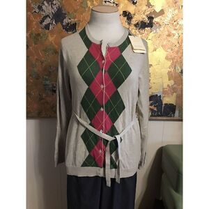 Greg Norman Women Collection Large Cotton Argyle Sweater Button Front NWT