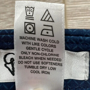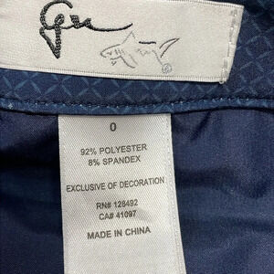 Greg Norman Women’s Flat Front Navy Geometric Print Golf Shorts in size 0. Excellent condition, they have been washed but never worn. See last photo for small marks on back of waistband from where tag was attached. Zipper, button and hook & tab front closure, two front and two back pockets, belt loops, side slits on legs, lightweight polyester/spandex. Please see photos for approximate measurements and details. Item may show difference in color based upon photography and perception. Photos are part of the description, as everyone’s level of condition may vary. From smoke free and pet free home. All packages are shipped the same or next business day.
