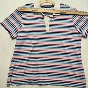 Greg Norman Womens XL Polo Shirt Multicolor Stripe Golf Activewear Cotton Blend