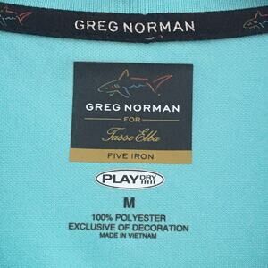 Greg Norman for Tasso Elba five iron, play dry medium shirt. 100% polyester.