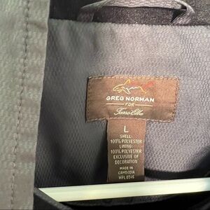 Great condition. Greg Norman for Tasso Elba. vest. Full zip. Dark gray with black details. Pockets. Great for fishing, camping, and other outdoor activities. Size Large. 100% polyester. Pit to pit laying flat 24” Shoulder to hem 27”. All measurements are approximate and taken lying flat. Smoke free home.
