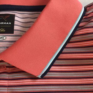 Greg Norman for Tasso Elba Polo Golf Shirt Men's XL Play Dry Salmon Striped