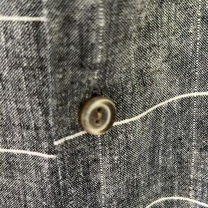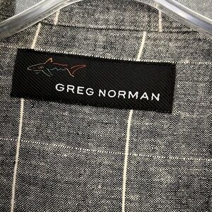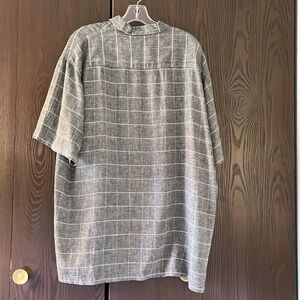 Greg Norman men’s part linen gray shirt with tiny white stripes. Short sleeves. Size Large.