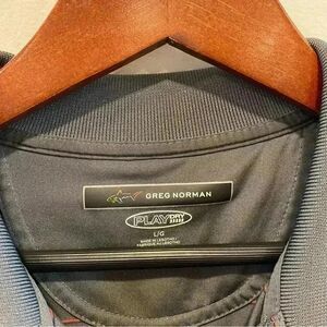 Greg Norman play dry stripe polo men's size large athletic performance gray golf