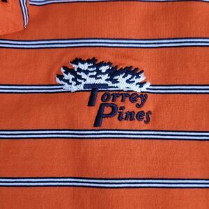 This is a Greg Norman Torrey Pines golf polo shirt. The Torrey Pines logo is stitched on the upper left chest.
