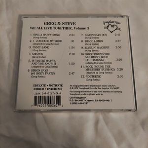 Greg & Steve - We All Live Together Vol. 3 CD. Released Youngheart Records. Great for homeschool library.