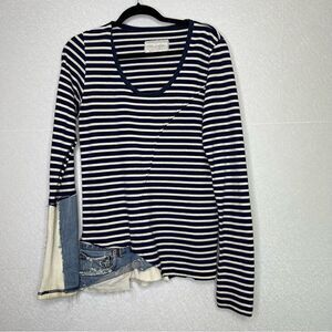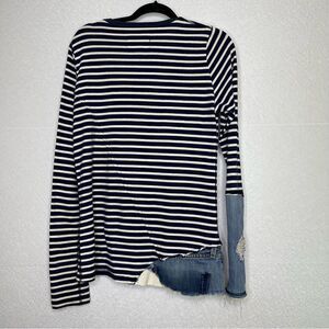 Greg Lauren Mixed Media Denim Stripe Asymmetric Shirt