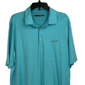 Greg Norman Light Blue Geometric Loose-Fit Short-Sleeve Polo Shirt Size XL