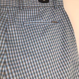 Greg Norman Blue and Gray Gingham Plaid Golf Shorts