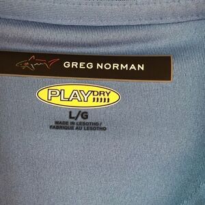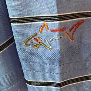 Greg Norman Play Dry Polo Shirt Preowned Excellent Condition Blue with Black and White Stripes Super Nice
