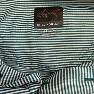 Greg Norman Polo Golf Shirt Size XL. Very good condition. Green/white pin stripes.