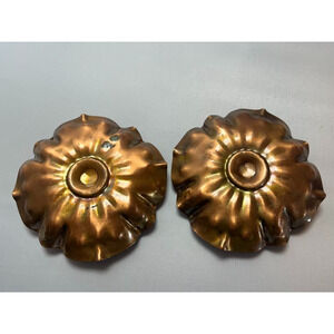 Gregorian 2 Copper Taper Candle Holders Flowers Scallop Edge VTG Pair Set MCM