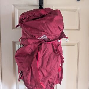 Z55 red framed backpack by Gregory. Perfect for travel and outdoor adventures. rain fly included. some internal wear (see photos)