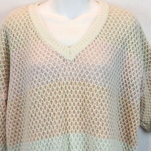 Greige stripped multicolored long-sleeve V neck tunic length sweater size XL