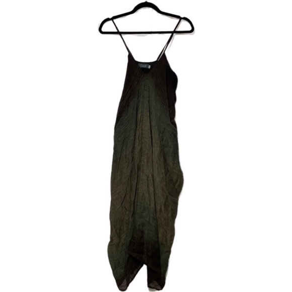 Greigh linen minimalist lagenlook strappy shift midi dress size XS/S