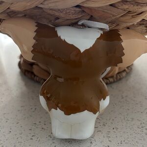Gremlins Gizmo Christmas ornament. On the back side of the ornament there is a scratch as shown in pictures and a mark on back side of his head. The front side of Gizmo is in perfect condition.