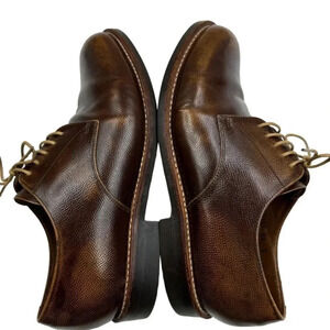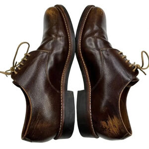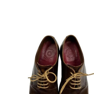 Elevate your formal attire with these classically styled Grenson Brown Leather Oxford Derby Dress Shoes. Crafted in India, the round-toe shoes feature a lace-up closure and G-width fitting with a logo accent for added sophistication. The solid pattern and preppy theme make them a perfect addition to any gentleman's wardrobe. Made with leather lining, insole, and outsole, these dress shoes exude luxury. Add a touch of elegance to your outfit with these Grenson shoes.