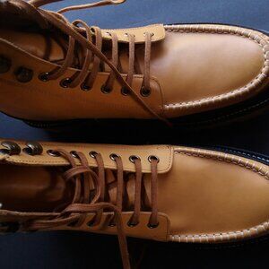 Grenson England Kinsey Leather Tan Rubber Mid Guard Moc Hiking Boots US 10