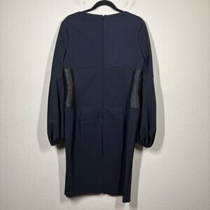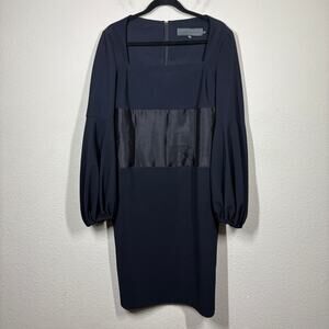 New Greta Constantine Size XXL Square Neck Sheath Dress Black Silk Wool Long Sleeves Style John