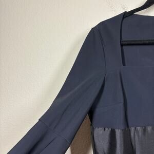 Greta Constantine Size XXL Square Neck Sheath Dress Black Silk Wool Long Sleeves