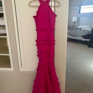 Designer gown gorgeous bright pink color worn for 2 hours at a formal wedding Size xs US 0 European size 2