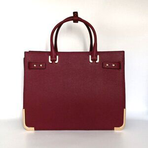 Beautiful Luana Italy Greta Tote leather handbag in color Plum with gold hardware.