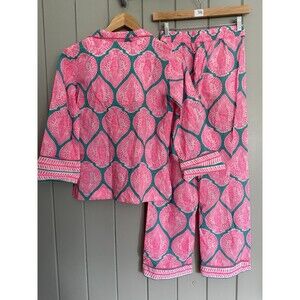 Gretchen Scott 2-Pc Pajamas Indian Summer Pink Turquoise Top Pants XS