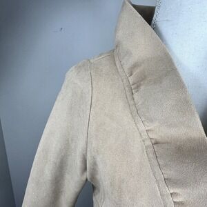 Gretchen Scott Beige Tan Ruffle V Neck Faux Suede Sheath Dress Size XS