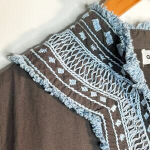 Gretchen Scott Binge Embroidered Tunic Dress Charcoal Grey Blue