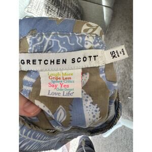 Gretchen Scott Blue Floral Midi Dress XS V-Neck Belted Waist
