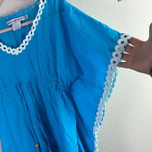 Gretchen Scott Blue Tunic Mini Beach Dress Swimsuit Coverup Size M