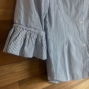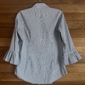 Gretchen Scott Blue & White Striped Ruffle Sleeve Priss Blouse