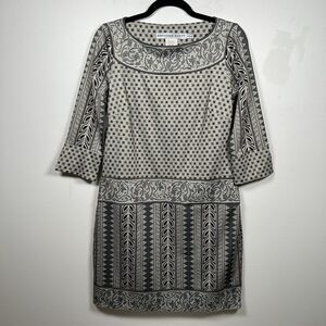 Gretchen Scott Border Jersey Shift Dress Kanga Forpe Print Neutral Size Small