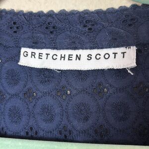 Gretchen Scott Cotton Eyelet Tunic Top Mixed Media Navy Blue size Medium