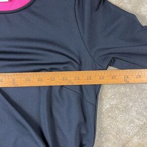 This elegant black sheath dress by Gretchen Scott Designs is perfect for work or cocktail occasions. Featuring a classic crew neck and long sleeves, it offers a sophisticated and timeless look. The dress is crafted from a solid black fabric, ensuring a sleek and polished appearance.
