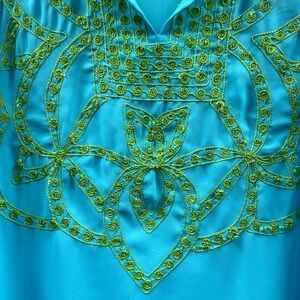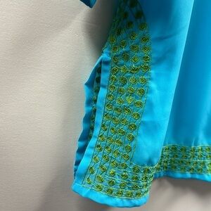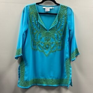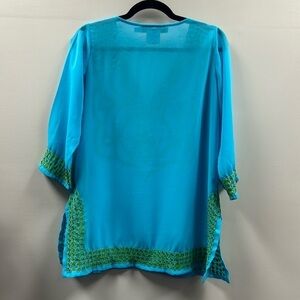 Gretchen Scott Designs Sheer Embroidered Tunic/Swim Coverup Blue & Green Size XS