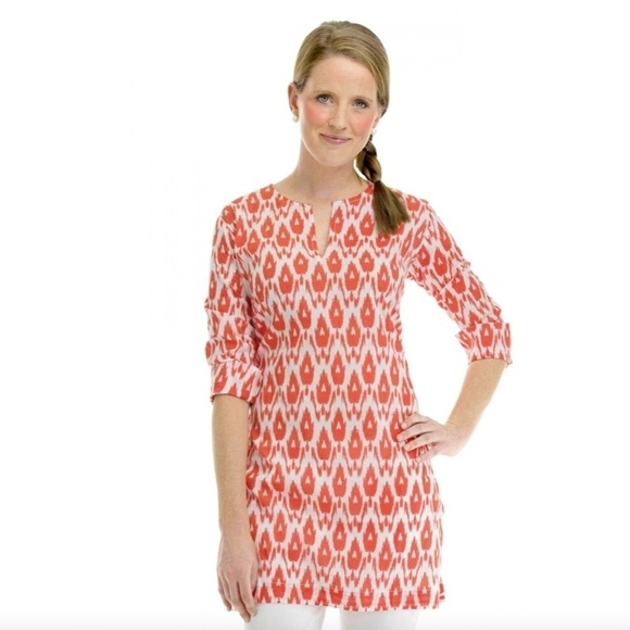 Gretchen Scott Designs V-neck Orange White Tunic/ Blouse / Top / Cover Up