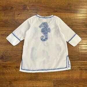 Gretchen Scott Designs cotton seahorse embroidered tunic dress Size 4-6